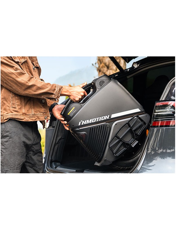 Pesant seulement 23 kg et affichant un design élégant de moins de 19 cm de large, la Inmotion V9 se glisse facilement dans un coffre de voiture ou un casier. Idéale pour les trajets du quotidien, elle se recharge complètement en seulement une heure (chargeur rapide non inclus).