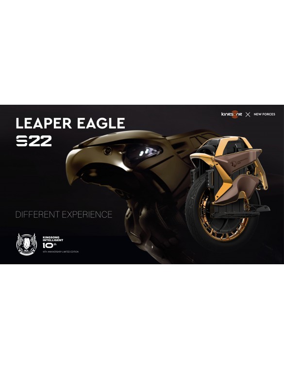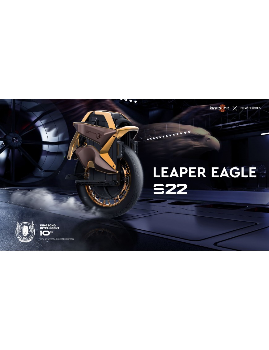 Pour les 10 ans de la marque, Kingsong nous sort la KS-S22 Leaper Eagle, une édition limité avec une nouvelle couleur et un nouveau design de cale-pied. Côté caractéristiques techniques, la version Limitée intègre de nouvelles glissières pour une meilleure sensation de suspension ainsi qu'un moteur plus puissant de 4000 Watts.